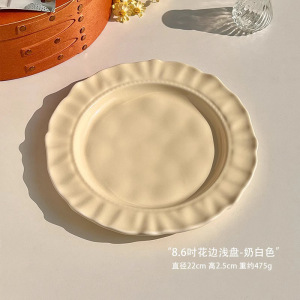 8.6寸花边浅盘-奶白色