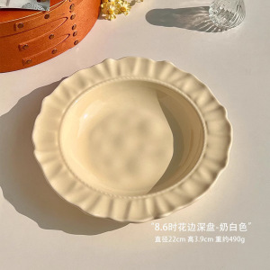 8.6寸花边深盘-奶白色
