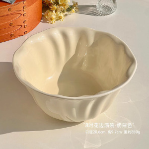 8寸花边汤碗-奶白色