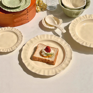 盘子家用餐盘碗碟高级感ins奶油风陶瓷餐具菜盘早餐盘水果甜品盘