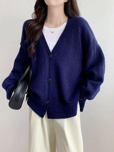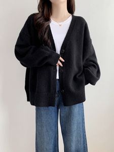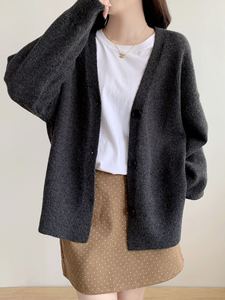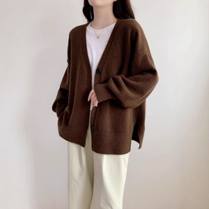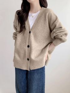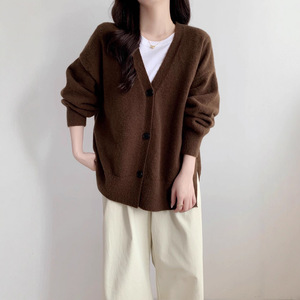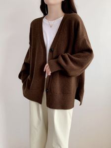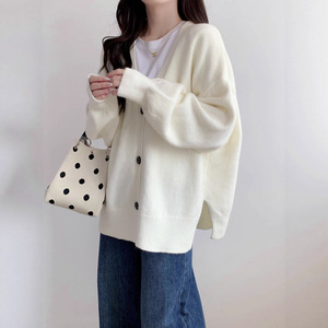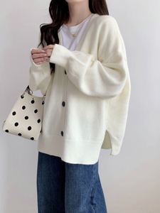 欧美跨境新款纯色大码慵懒风单排扣侧开叉针织开衫休闲百搭毛衣女