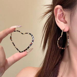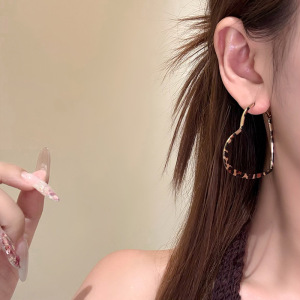 银针欧美复古豹纹心形耳圈美拉德简约个性耳环小众高级感气质耳饰