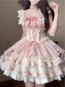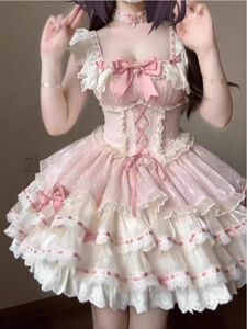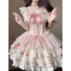 可爱洋气洛丽塔蝴蝶结小飞袖连衣裙夏季新款束腰显瘦蓬蓬蛋糕裙女
