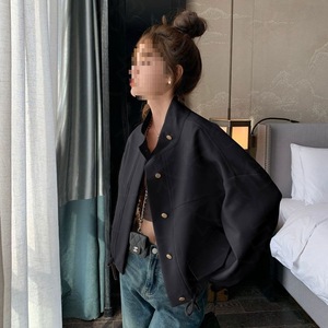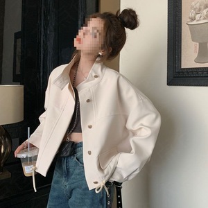 休闲宽松工装短外套女韩版夹克外套春秋2025新款米白色立领小个子