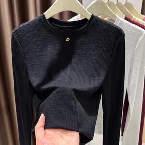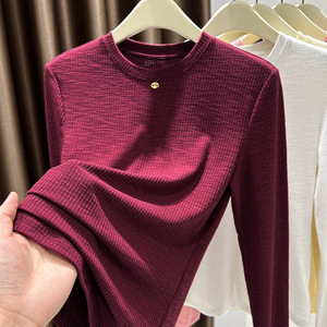 2025安可拉红秋季针织上衣洋气内搭打底衫女薄款圆领修身长袖T恤