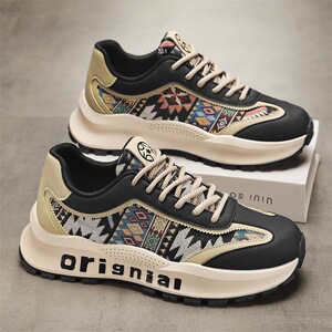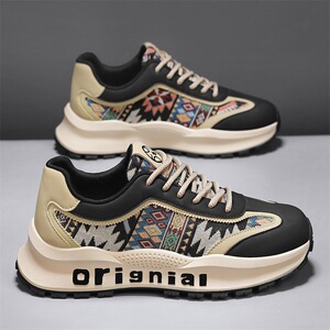 男鞋2025春季新款低帮百搭印花布面老爹鞋潮流休闲舒适运动阿甘鞋