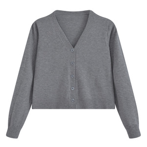 秋季2025年新款灰色毛衣开衫外搭长袖小外套短上衣内搭针织衫女款
