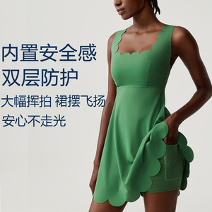 跨境小波浪美背连体网球裙女 大码欧美收腰防走光户外运动健身裙
