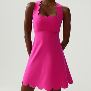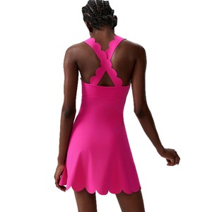 LT666 小波浪双肩带连体运动网球裙 洛神红