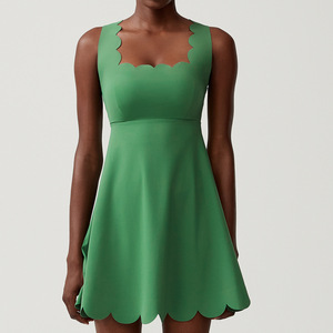 LT666 小波浪双肩带连体运动网球裙 杜松子绿