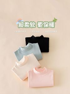 女童半高领打底衫秋季纯棉儿童纯色中领内搭男童秋冬宝宝上衣小童