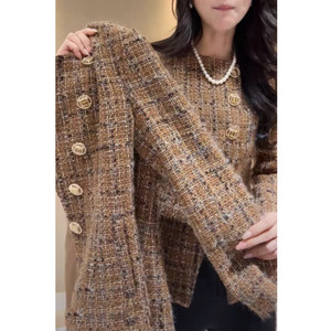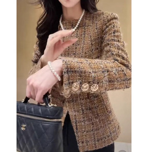 “卡布奇诺 贵气美拉德混色粗纱编织复古斜门禁设计感小香风上衣
