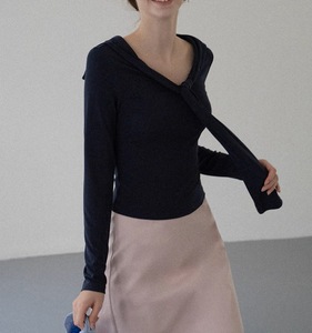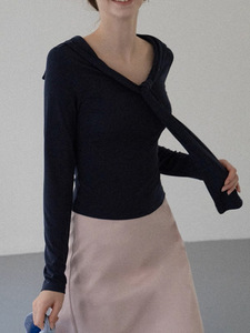 纯色系带v领长袖T恤早秋新款修身气质显瘦休闲韩系百搭上衣