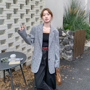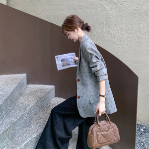 灰色碎花西装外套女秋2025新款感韩系设计感西服小个子