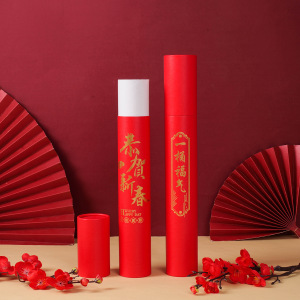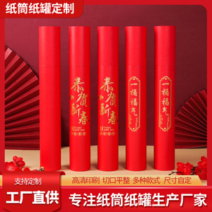 现货对联纸筒年货包装2026马年红色圆形纸罐春联印刷烫金logo定制