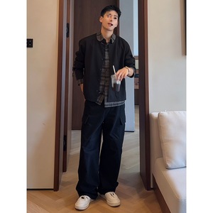假两件黑色格纹衬衫领针织衫男款韩系氛围感早秋上衣毛衣开衫外套