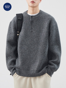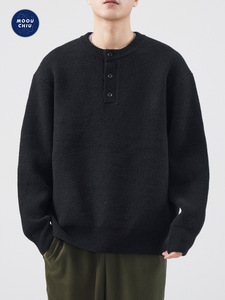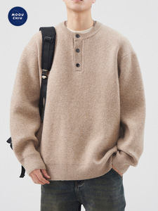 沐丘男装∣秋冬新款美式重磅圆领毛衣男士慵懒风宽松休闲套头外套