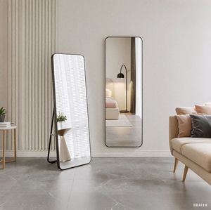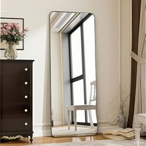 黑色全身镜56 英寸 x 21 英寸圆角落地镜站立悬挂或靠墙适合卧室
