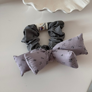 法式灰紫色蝴蝶结黑色大肠发圈头饰少女简约丸子头盘发不伤发饰品