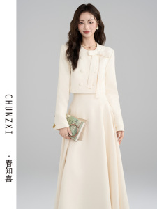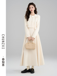 春知喜法式富家千金小香风套装女秋冬新款蝴蝶结外套半身裙两件套
