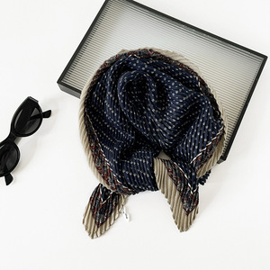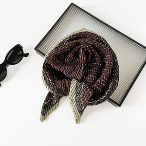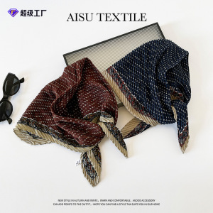 复古褶皱丝巾点点咖印花小方巾头巾小众设计感服装配饰秋冬领巾女