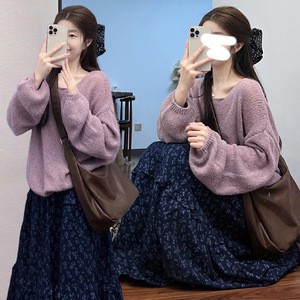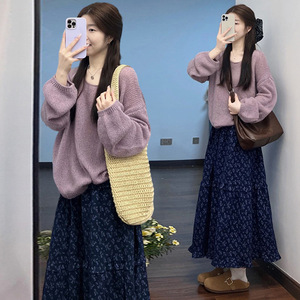 孕妇连衣裙套装春秋2025新款韩版孕期穿搭针织毛衣半身裙两件套女