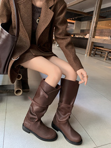 骑士 靴2025秋季新款女鞋粗跟低跟时装靴复古高筒靴