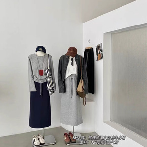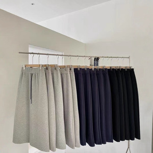 秋季A字裙25开叉半身裙松紧抽绳高腰长裙休闲太空棉新款显瘦裙子