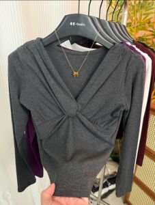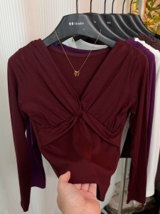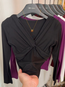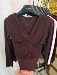 高级感chic别致扭结交叉领上衣女2025早秋新款洋气减龄显瘦打底衫