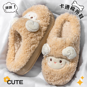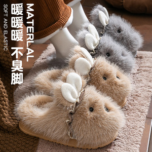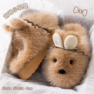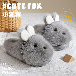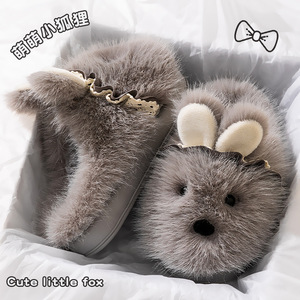 女款狐狸耳棉拖鞋2025新款秋冬季室内家居办公保暖可爱少女棉鞋女