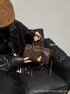 手提波士顿保龄球包包女2025新款复古百搭通勤包真皮斜挎包枕头包