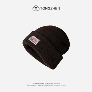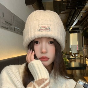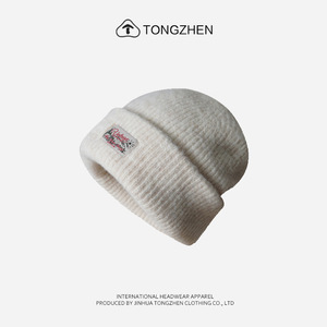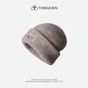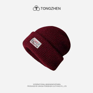安可拉红针织双层帽子冷帽男女情侣百搭复古显脸小毛线帽冬季保暖
