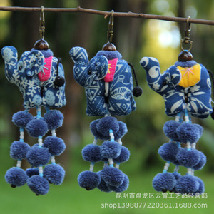批发扎染挂件扎染小饰品蓝染小象挂件钥匙扣扎染工艺品布艺挂件