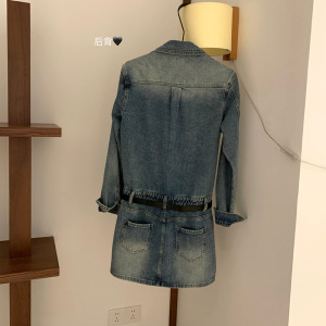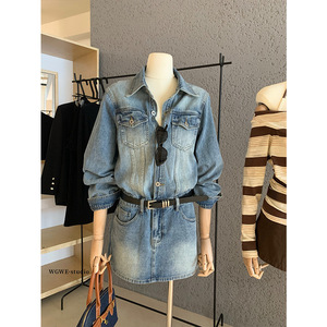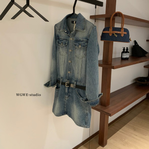 WGWE7150复古御姐风牛仔连衣裙女长袖显瘦气质辣妹裙子