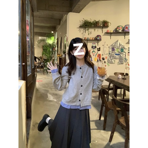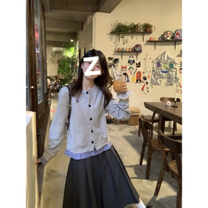 日系假两件格子拼接开衫卫衣女秋季2025新款宽松慵懒风设计感外套