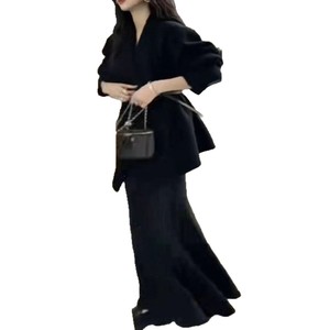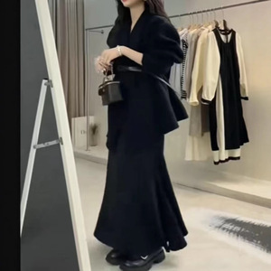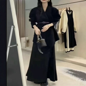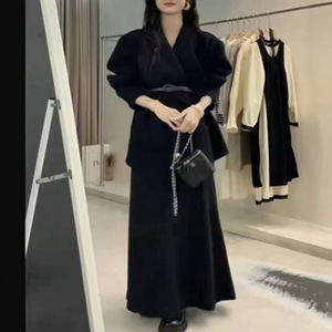PH59830大爱美依缘2025秋冬新款黑色收腰毛衣外套半身裙洋气显瘦