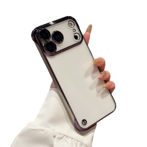 电镀无边框适用iPhone17PROMAX超薄裸机感PC手机壳苹果16镜头膜15