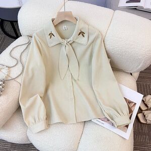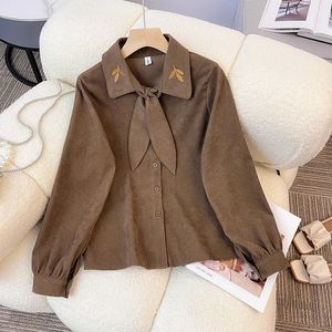 通勤小众秋冬刺绣百搭外穿灯芯绒时尚设计感法式绑带衬衫女上衣