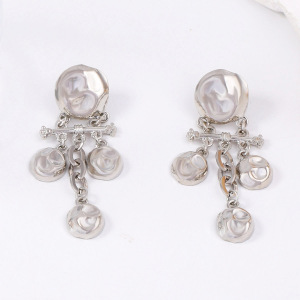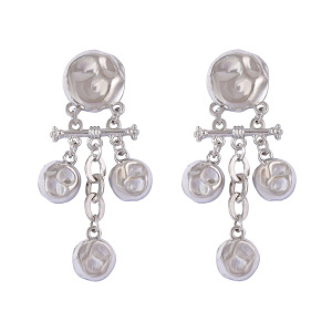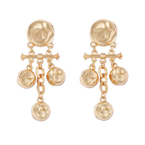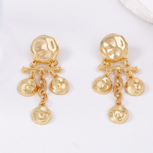跨境复古潮流冷淡风设计感合金几何凹凸锤纹肌理圆形拼接流苏耳坠