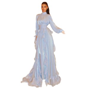 跨境欧美外贸女装2025秋季新款高领长袖荷叶边装饰收腰宴会连衣裙