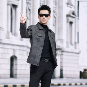 全网低价秋冬季压花翻领PU短款夹克皮衣男装外套时尚休闲百搭潮流