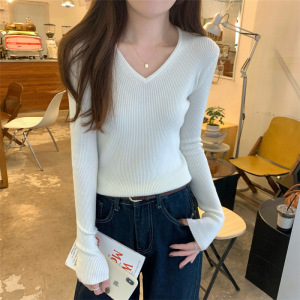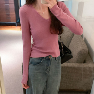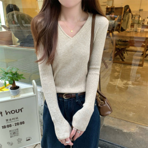 KANING纯色气质V领针织打底衫2025秋冬新款内搭保暖气质毛衣上衣