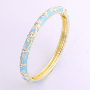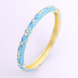 新中式景泰蓝手镯女复古宫廷风珐琅滴油花卉镶锆高级感古风手镯