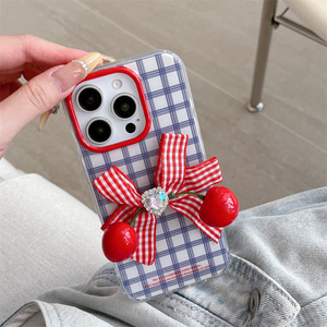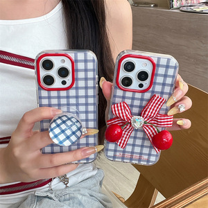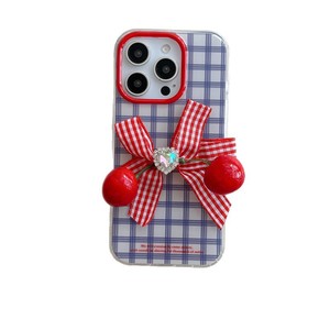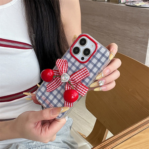 格纹立体丝带蝴蝶结樱桃适用iPhone17苹果16ProMax手机壳14小众13