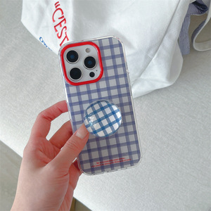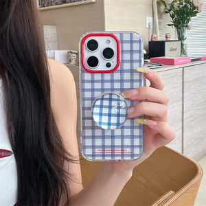 蓝色格纹英文 壳+圆形蓝色格纹支架