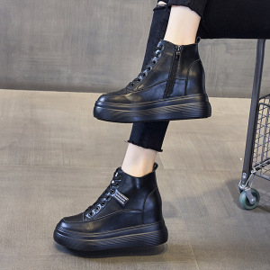 2025新款女式内增高真皮爆款百搭防滑透气马西靴女厚底休闲高帮鞋