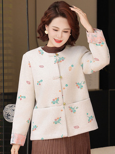 气质妈妈秋装毛呢外套2025新款中老年女装时尚上衣服春秋短款夹克