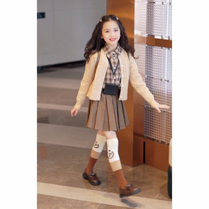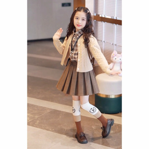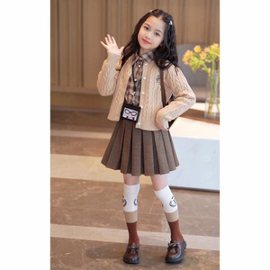 女童连衣裙秋装2025新款洋气儿童针织开衫百褶裙套装女孩学院裙子