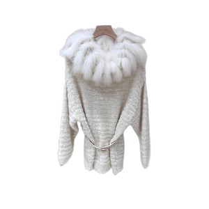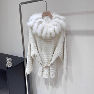秋冬新款针织毛衣套头露肩狐狸毛皮草外套洋气年轻款韩系温柔气质