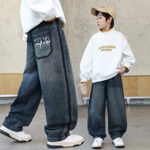 男童秋装裤子中大童男孩秋季牛仔裤2025新款儿童春秋帅气休闲长裤
